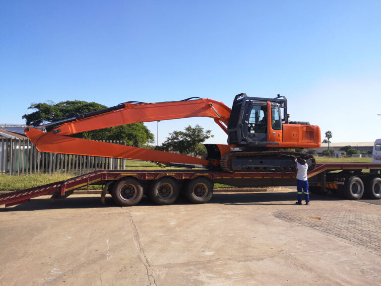 A custom Hitachi excavator boom extension to increase reach and versatility.