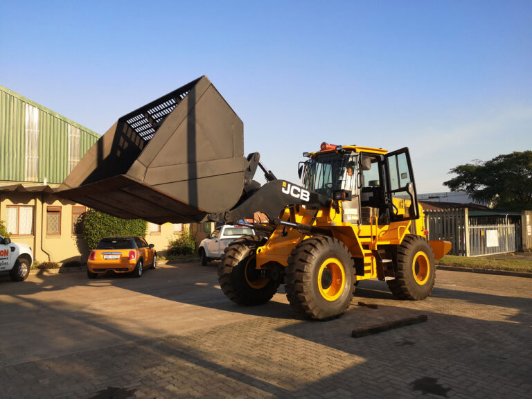 A high-capacity JCB 432 bagasse bucket for efficient lightweight handling and loading.