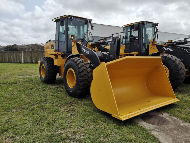 A heavy-duty bucket for a John Deere 624K loader, for handling high-volume material..