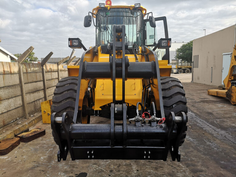 A JCB 432 quick attach system to enable fast, secure attachment changes.