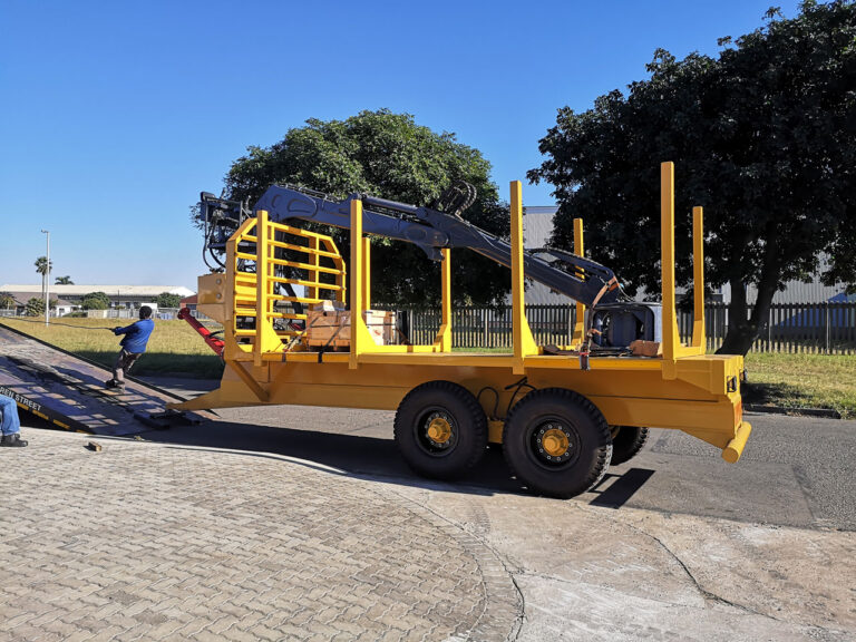 A custom 6m flatdeck trailer with cane config for efficient transport and handling.