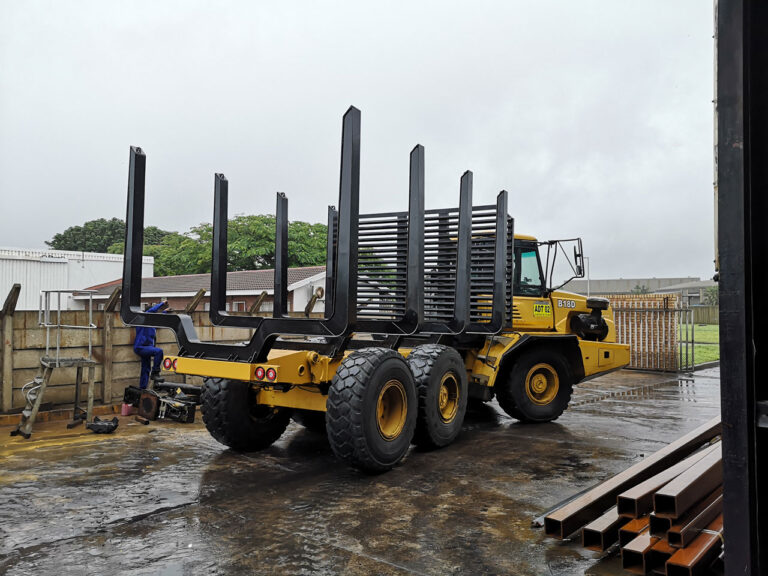 Custom Bell B18 timber stanchions for securing and stabilising timber loads.