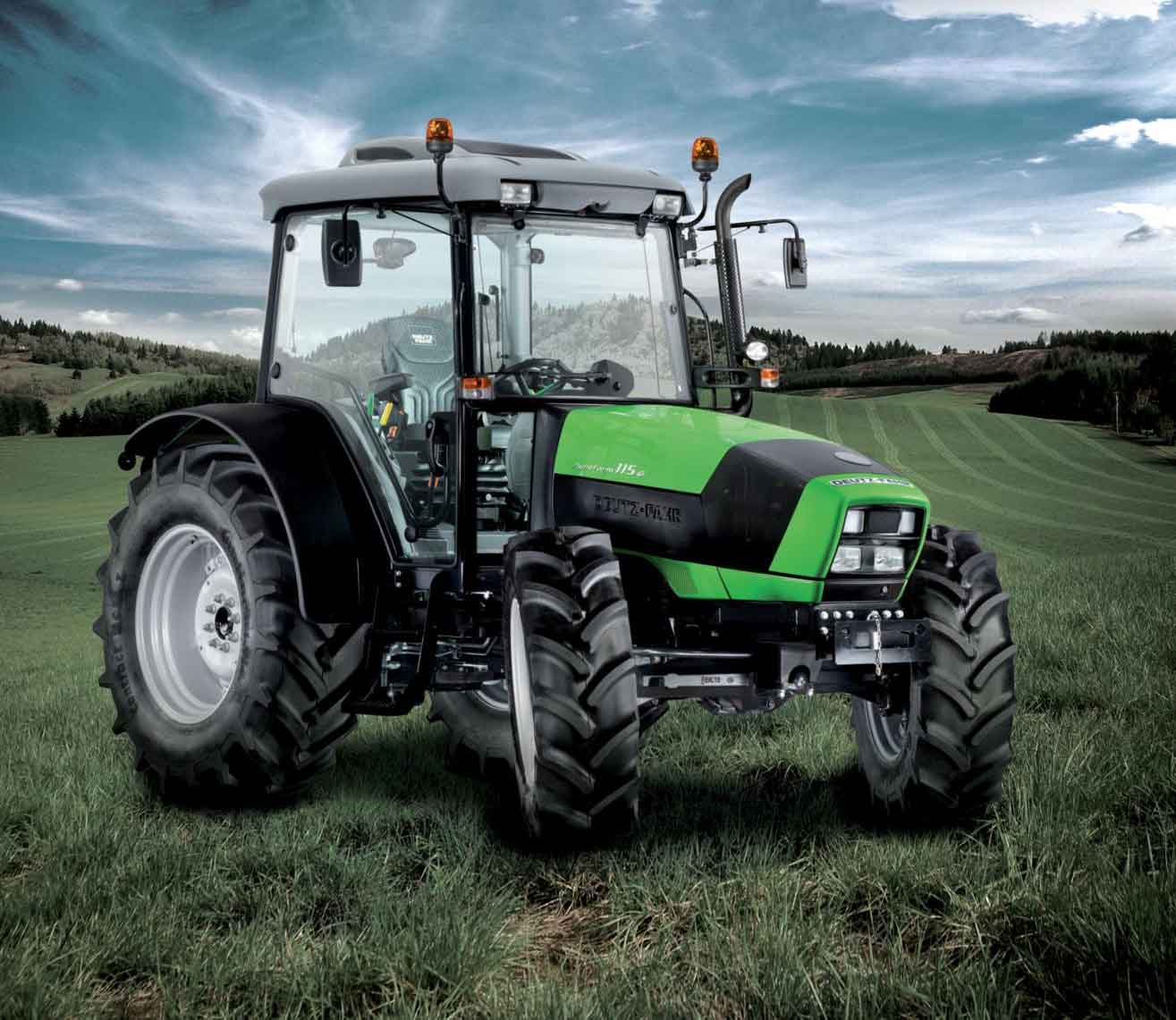 The Deutz Fahr Agrofarm G115 Series features powerful four-cylinder SDF Series 1000 engines, ranging from 85 to 115 horsepower. Engine options include naturally aspirated for the G 85, and turbocharged with intercooler for the G 115, meeting Tier I and II emission standards respectively. These engines deliver ready power even at low speeds, coupled with exceptional fuel efficiency and reliability. With compact design and efficient cooling, they ensure reliable performance in various weather conditions. Additionally, the high-pressure injection system provides superior performance and torque, with maximum torque available at just 1600 rpm for exceptional elasticity.